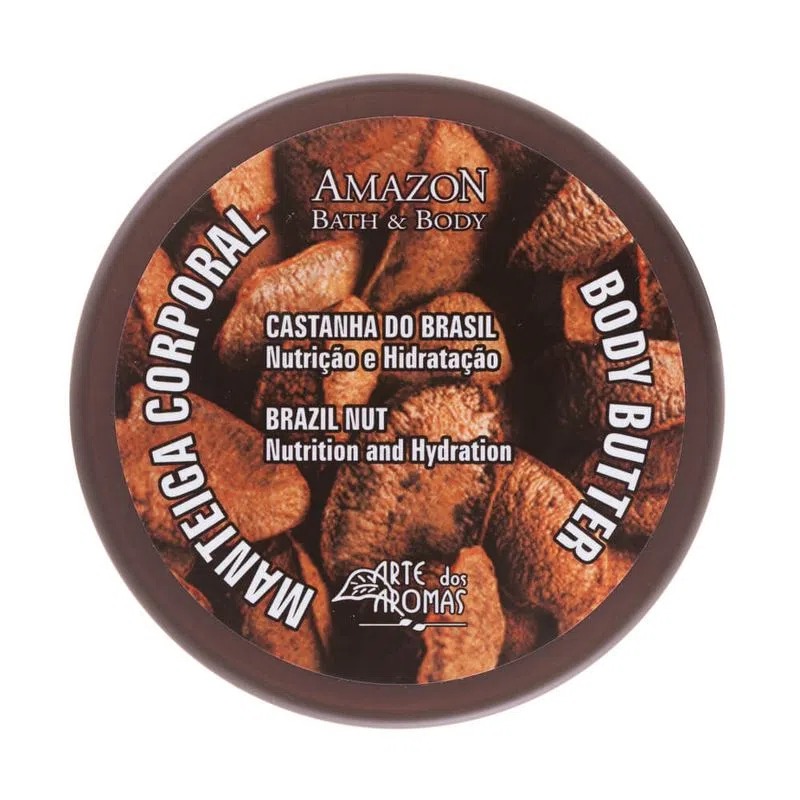 A Manteiga Hidratante Corporal Castanha do Brasil da Arte dos Aromas possui uma fórmula rica em ingredientes orgânicos certificados como a manteiga de cupuaçu, extrato de Aloe vera, óleo de castanha, que lubrificam, nutrem e hidratam a pele, e também Extrato de Açaí, provenientes da Amazônia. A manteiga hidratante corporal castanha do Brasil é um creme hidratante natural mais concentrado e de textura mais densa que a loção e proporciona nutrição e hidratação para peles secas, deixando-as saudáveis e aveludadas. Previne o aparecimento de estrias e envelhecimento precoce da pele, pois auxilia na absorção de água e na renovação celular, deixando a pele macia e suave.